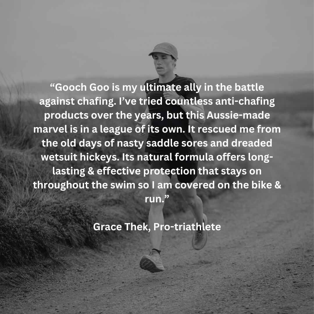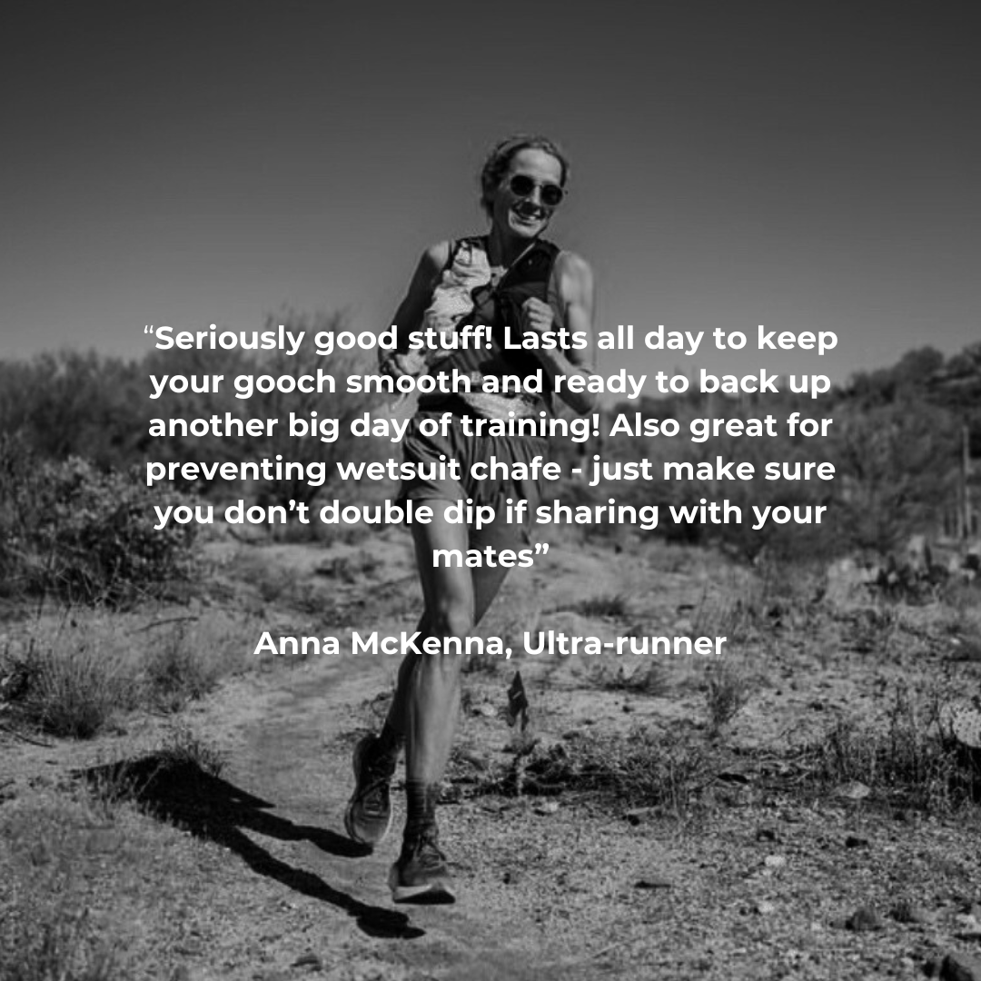 “It's not just my gooch that needs special attention...chafing comes in all shapes and sizes! There's no other brand I would trust! Gooch Goo is Aussie made with all natural ingredients so you know you're not putting any nasties on yourself in the valuable areas.”